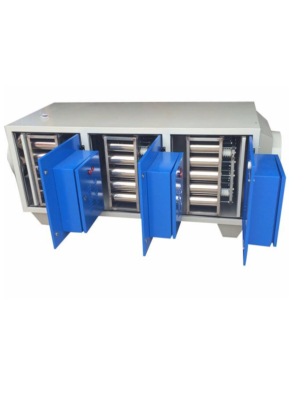采用脈沖高壓高頻等離子體電源和齒板放電裝置,使其產生高強度、高濃度、高電能的活性自由基,在毫秒級的時間內,瞬間對有害廢氣分子進行氧化還原反應,將廢氣中的大部分污染物降解成二氧化碳和水及易處理的物質。