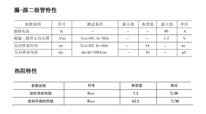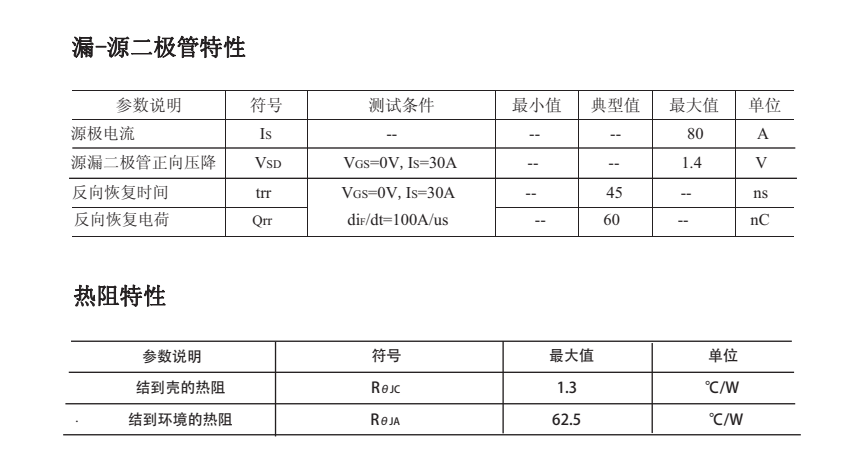 最大脈沖漏極電流(IDM ):480(A);靜態(tài)導(dǎo)通電阻(typ):VGS=10V則為2.95mΩ;反向傳輸電容:97pF。